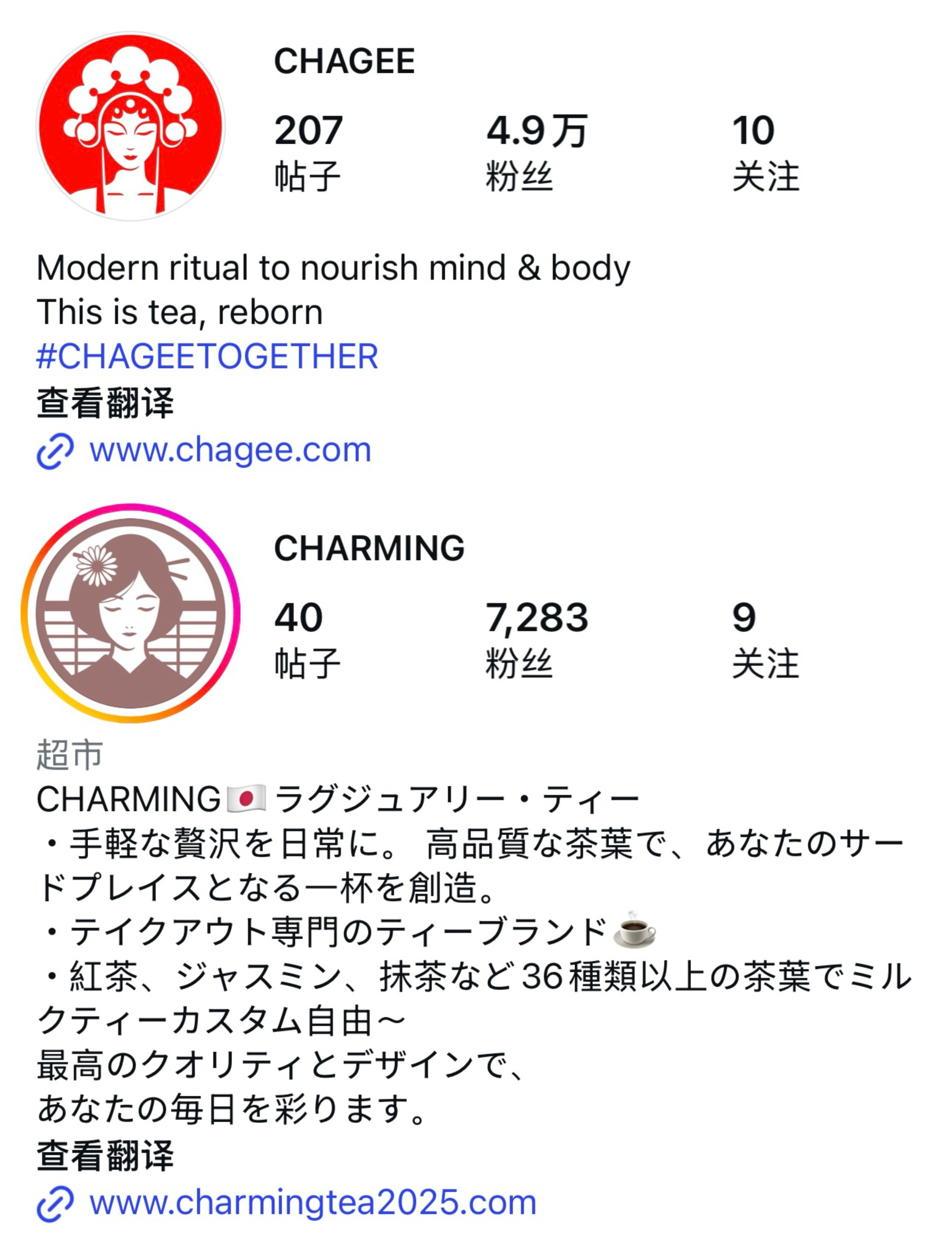 今日有网友反响,霸王茶姬(英文实:CHAGEE)疑似被1家实为“CHARMING”
